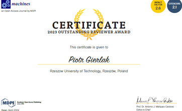 Outstanding Reviewer Award 2023 - Machines (MDPI)