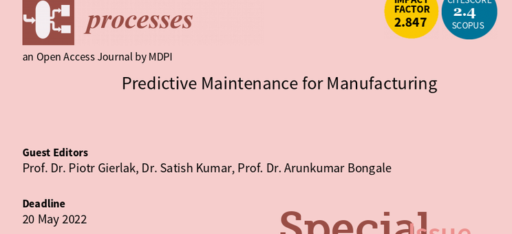 As a Guest Editor, I invite you to publish your articles in the special issue of "Predictive Maintenance for Manufacturing" in the journal "Processes" (IF 2,847).